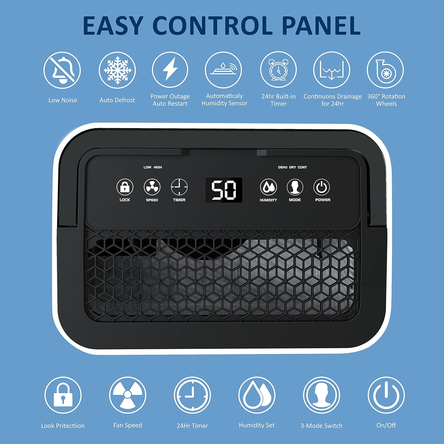 Special Feature | Continuous Draining, Digital Display, 24H Timer, Ergonomic Handle, 360° Universal Wheel, Portable, Overheat Protection, Water Full Alert, Save Energy |