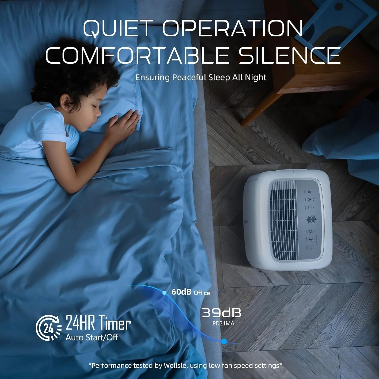 Sleep soundly while the dehumidifier works quietly at just 20–35 dB. Soft and gentle, it keeps the room cozy and fresh, so your whole family can enjoy a restful, peaceful night.